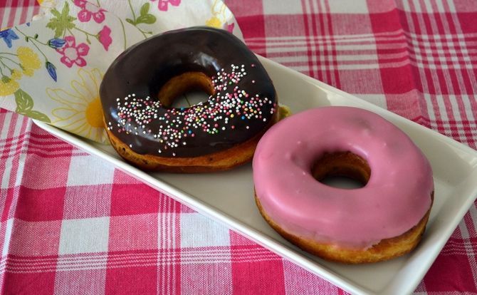 Herkullinen munkkirinkilä joka on kuorrutettu sokeripomadalla tai suklaalla